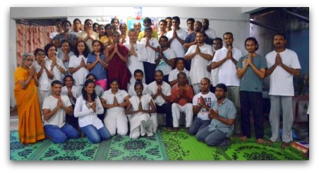 Acharya Kriyananadamayi assisted by Ahil Siva and Devaki offer Yoga and meditation classes